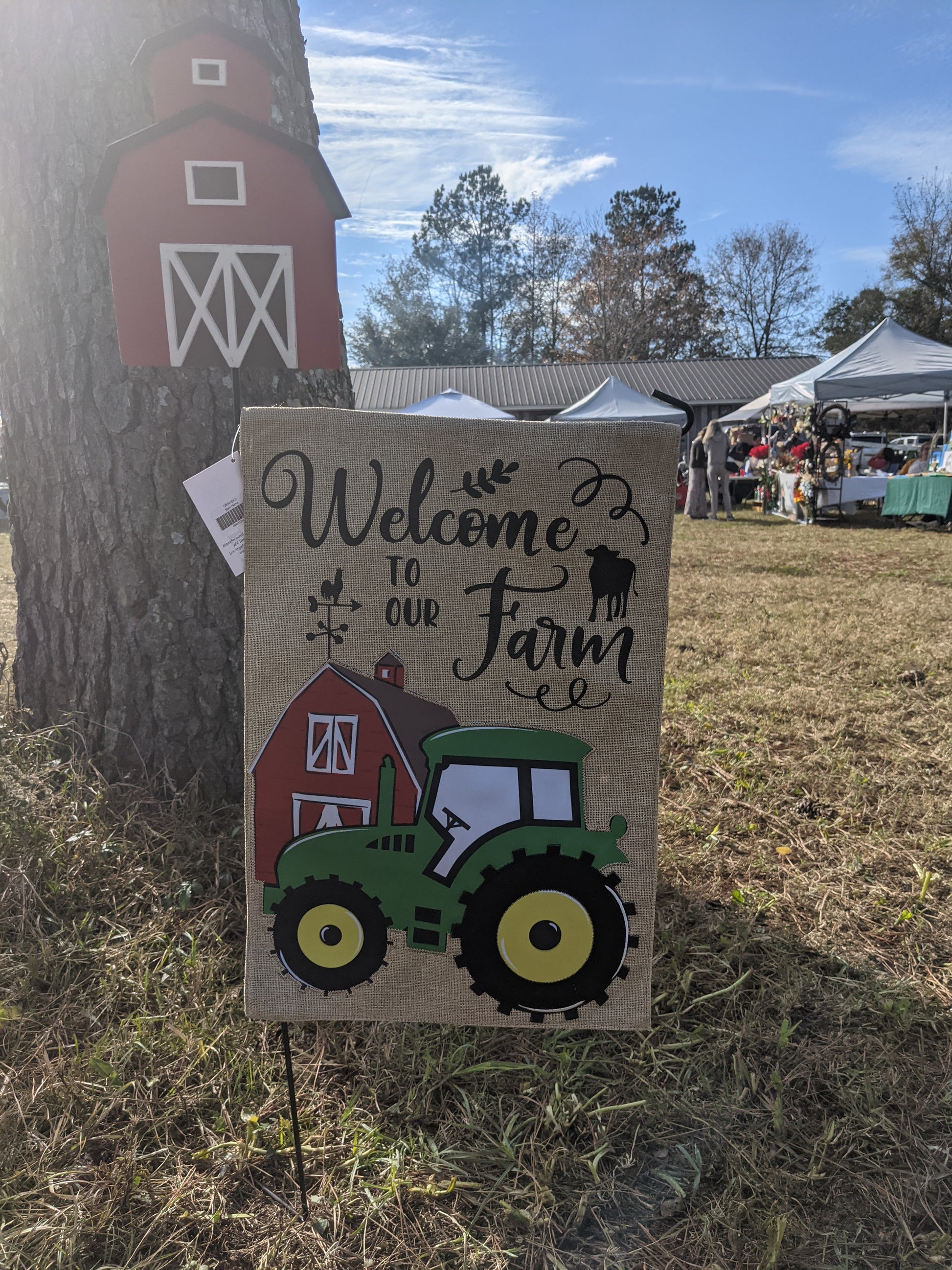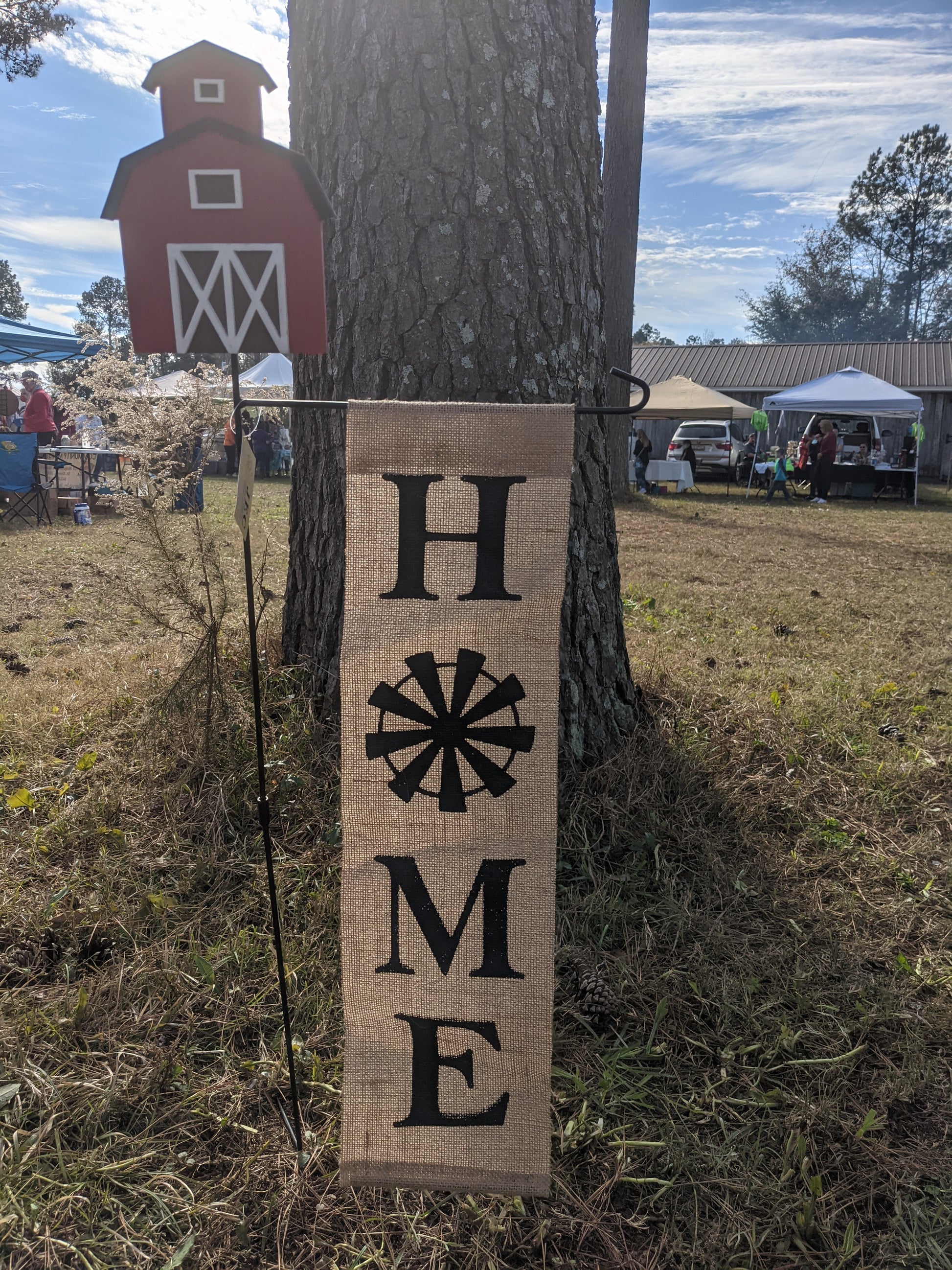 - Garden stake with decorative top is approximately 46”x14” assembled, Banner size 8”X28”