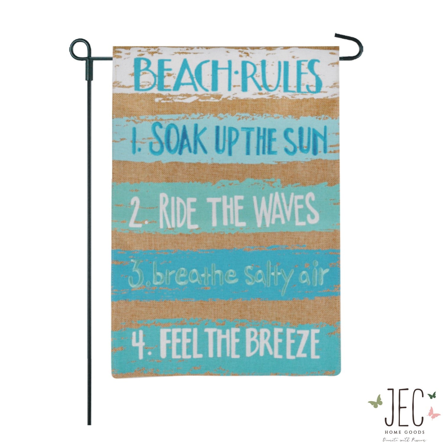 Beach Rules Burlap 2-Sided Garden Flag 12.5x18"