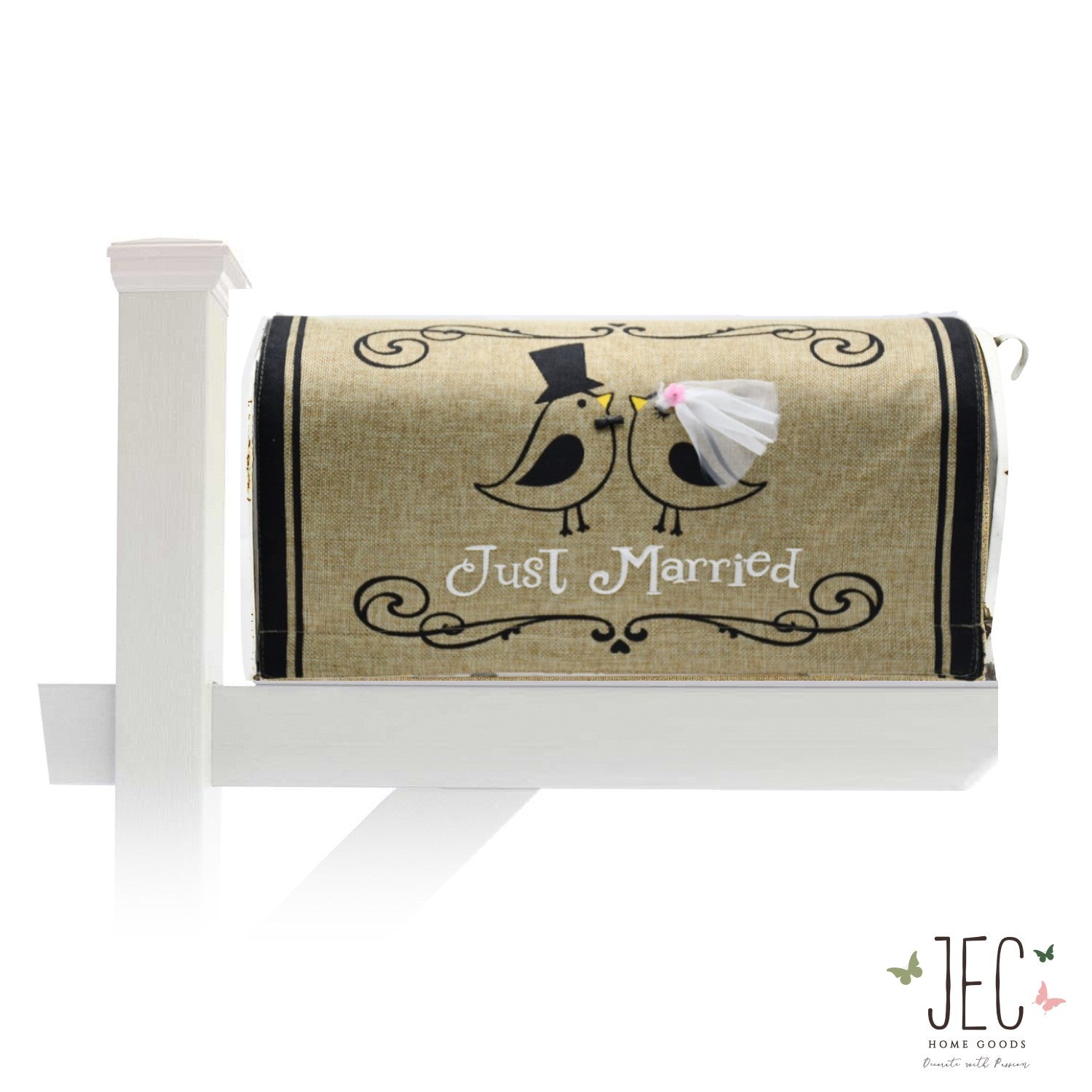 High quality “Just Married” featuring a pair of bridal birds mailbox cover