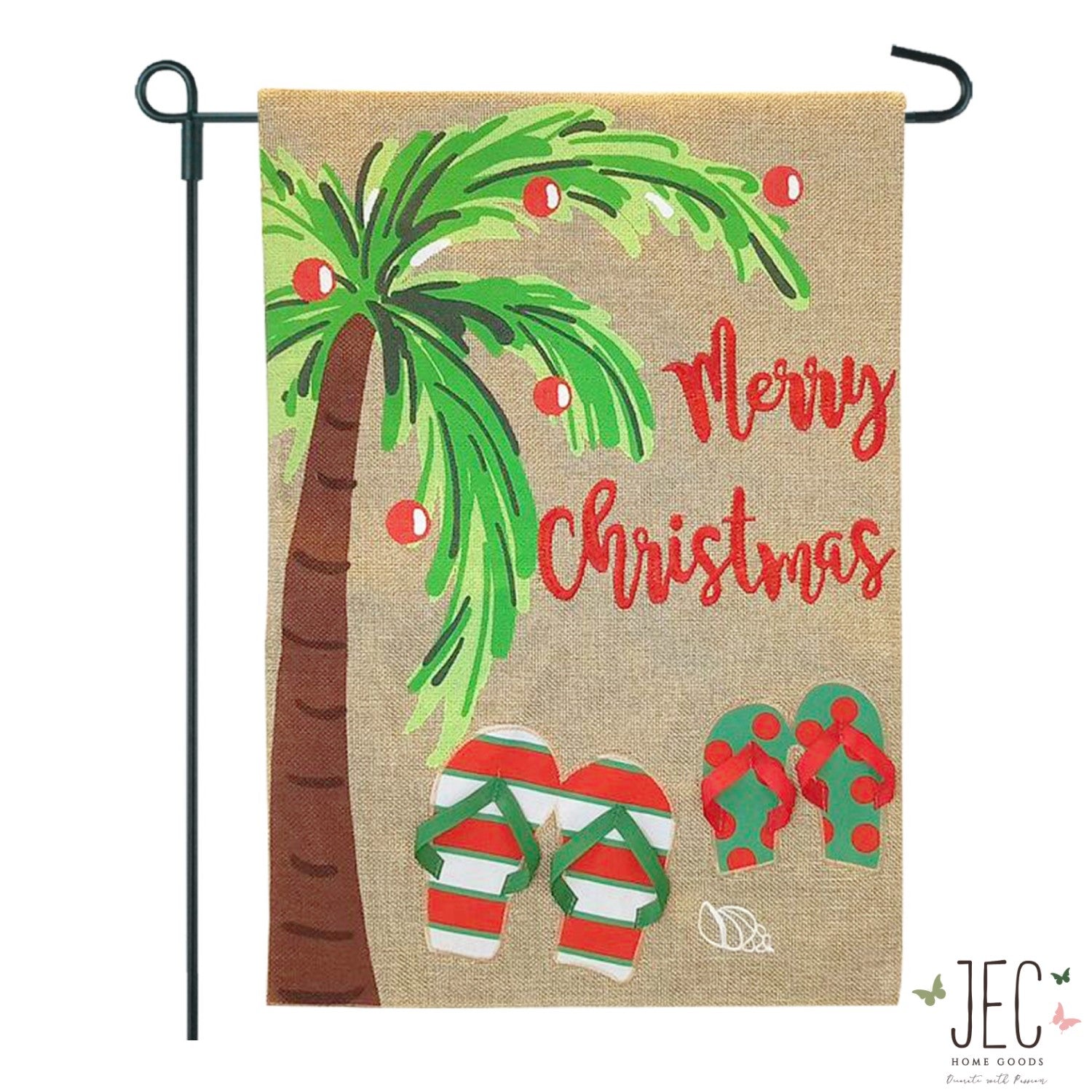 Christmas Flip Flop Burlap 2-Sided Garden Flag 12.5x18"