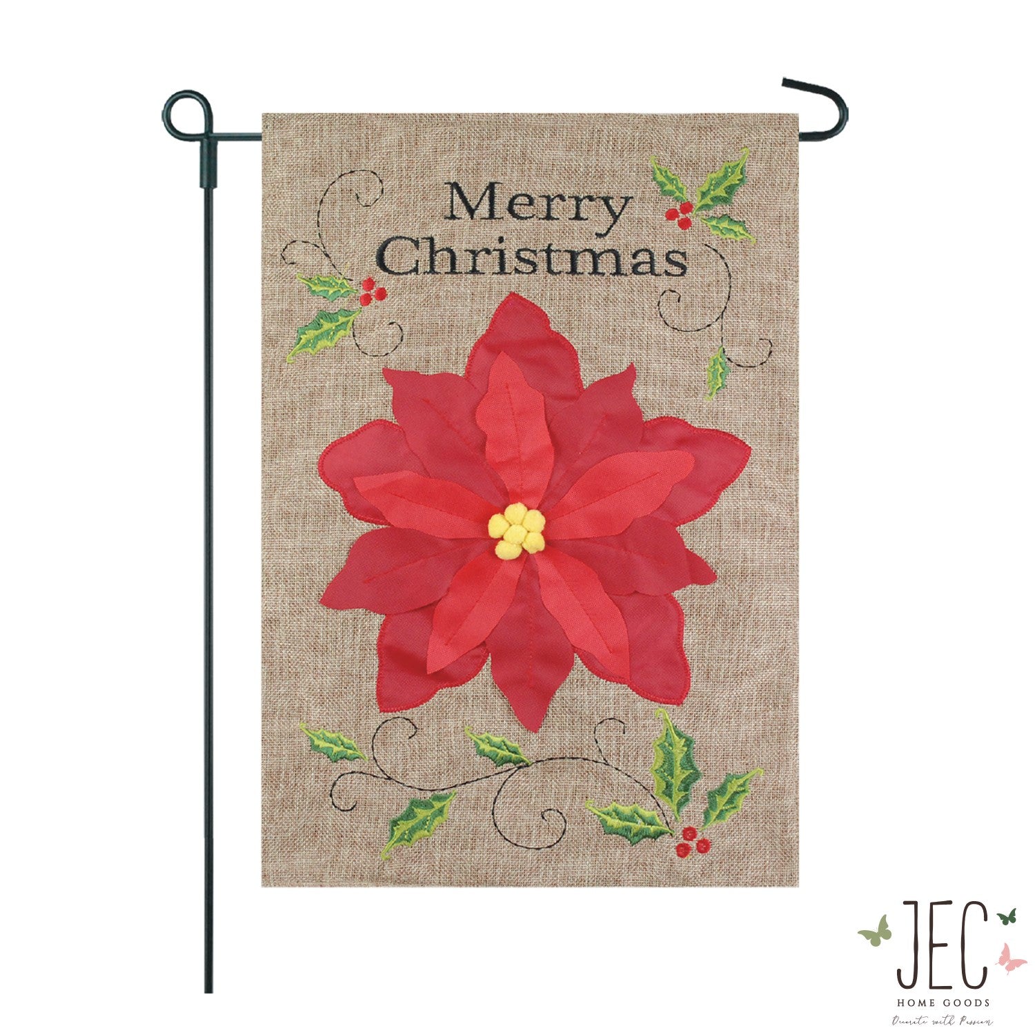 This festive Christmas flag features a beautiful detailed poinsettia that is perfect for anywhere in your yard to welcome the winter season