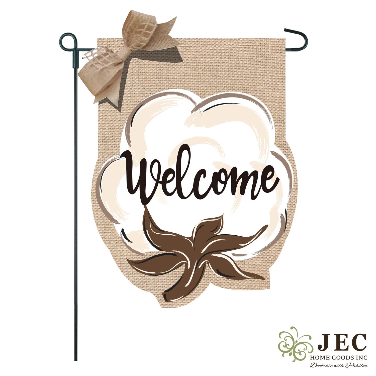 Cotton Boll Welcome Burlap 2-Sided Garden Flag 12.5x18"