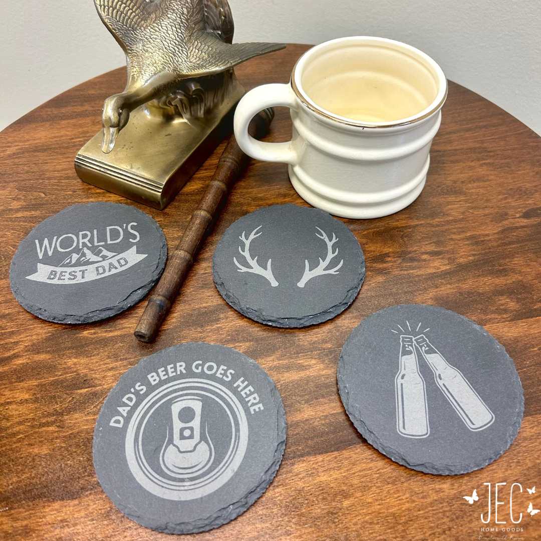 Laser Engraved Slate Coasters (Set of 4) - Dad Coaster Set