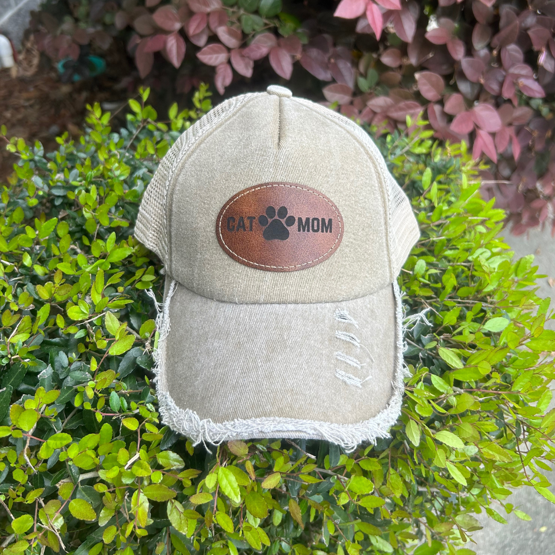 Cat Mom - Engraved Leatherette Hat