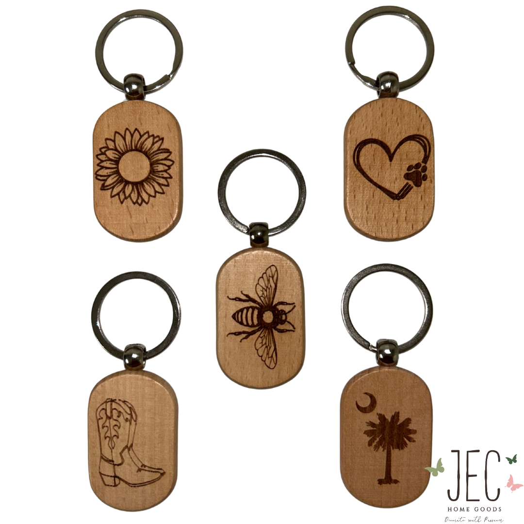 - Each Keychain has its own personality and may vary in appearance, giving them a distinct wood-burned charm.