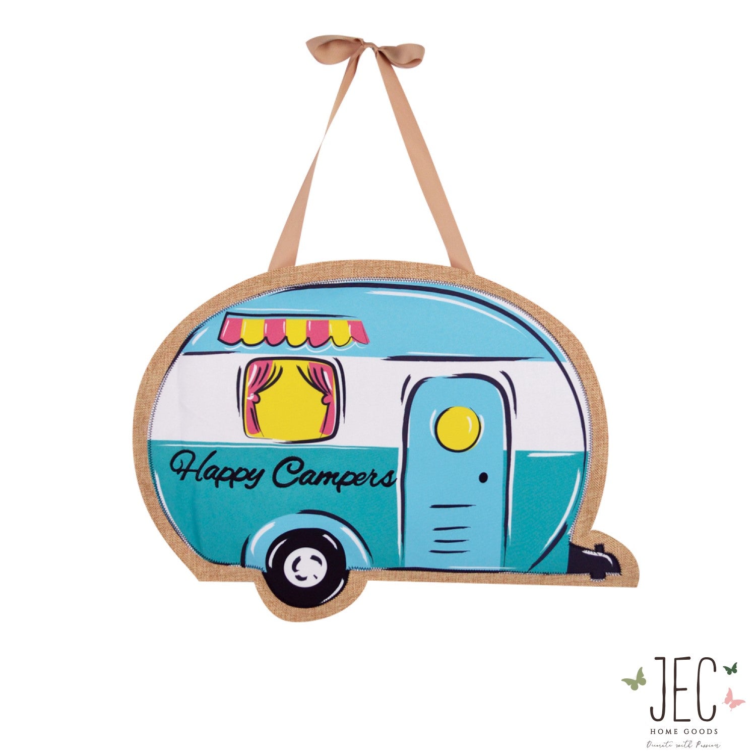 Turquoise Happy Campers Burlap Wall Décor 21"x23"