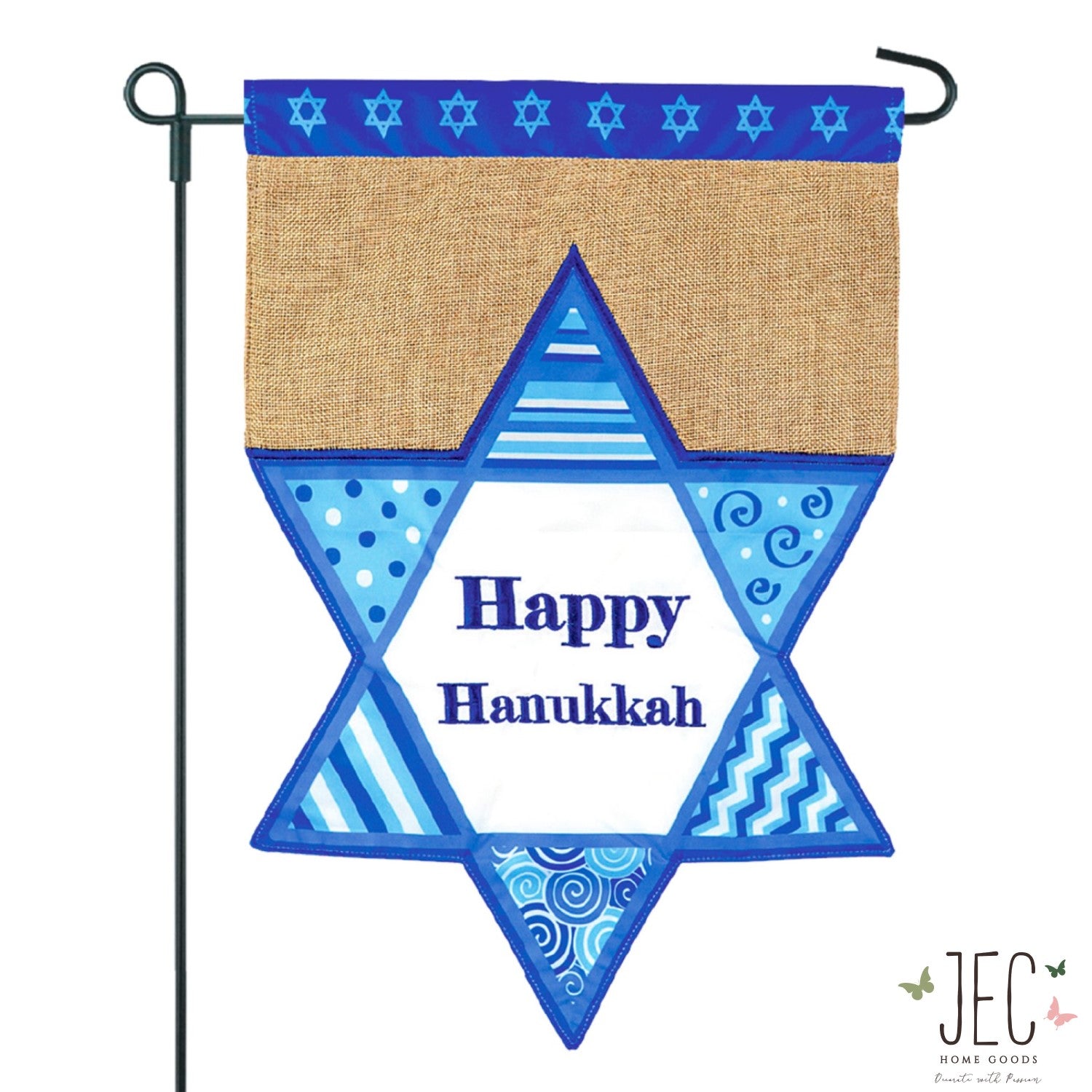 Happy Hanukkah Burlap 2-Sided Garden Flag 12.5x18"