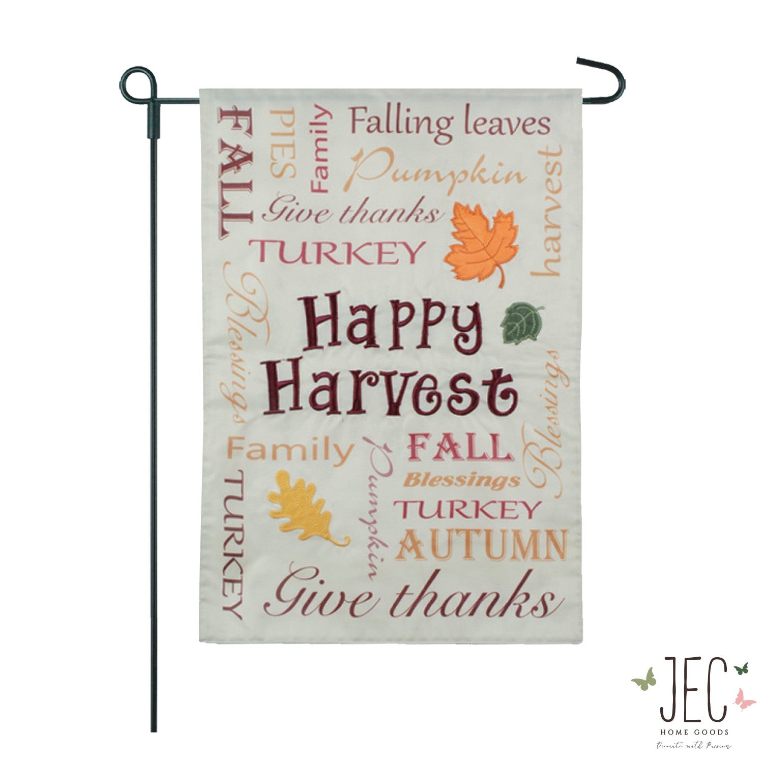 Happy Harvest Typography 2-Sided Garden Flag 12.5x18"