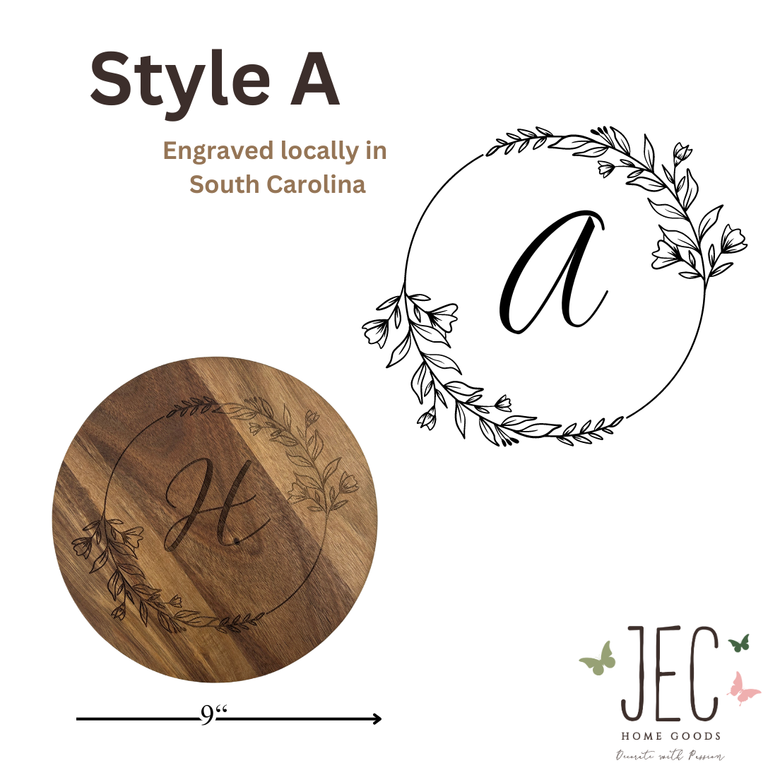 Laser Engraved Wood Serving Board - Floral Letter