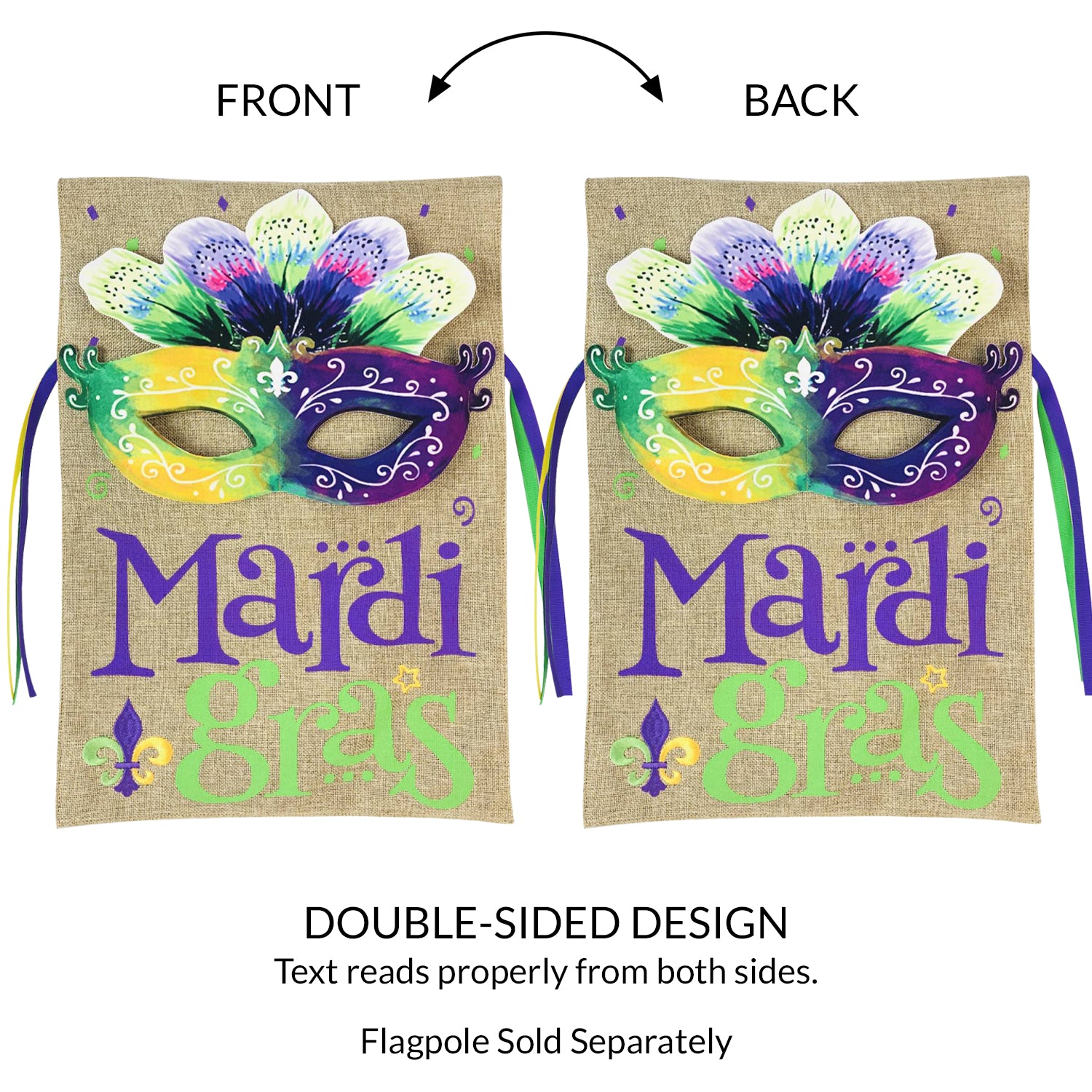 Mardi Gras Watercolor Mask Burlap 2-Sided Garden Flag 12.5x18"