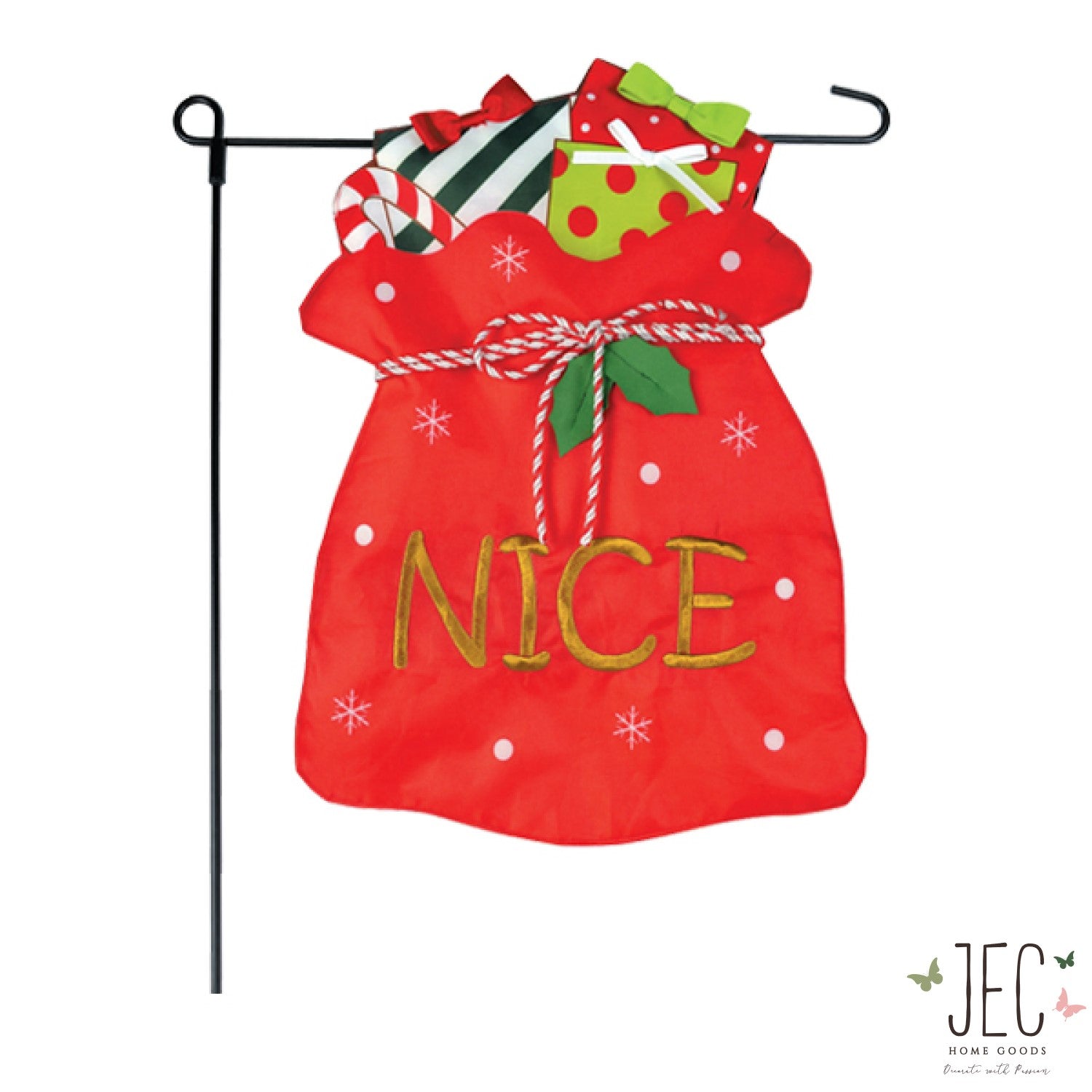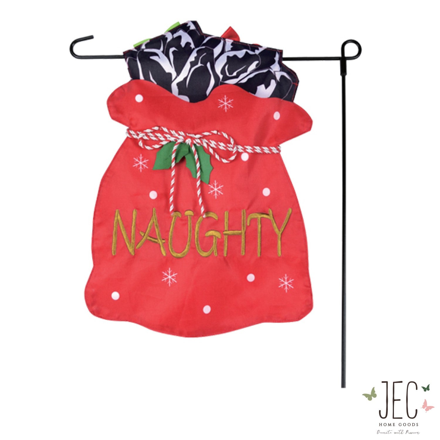 Naughty & Nice Santa Bag 2-Sided Garden Flag 12.5x18"
