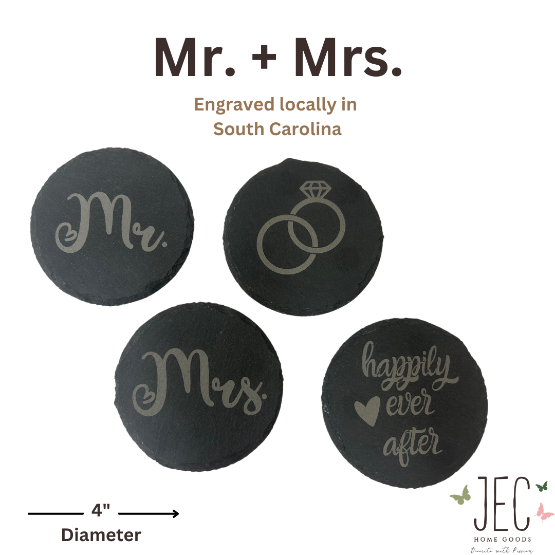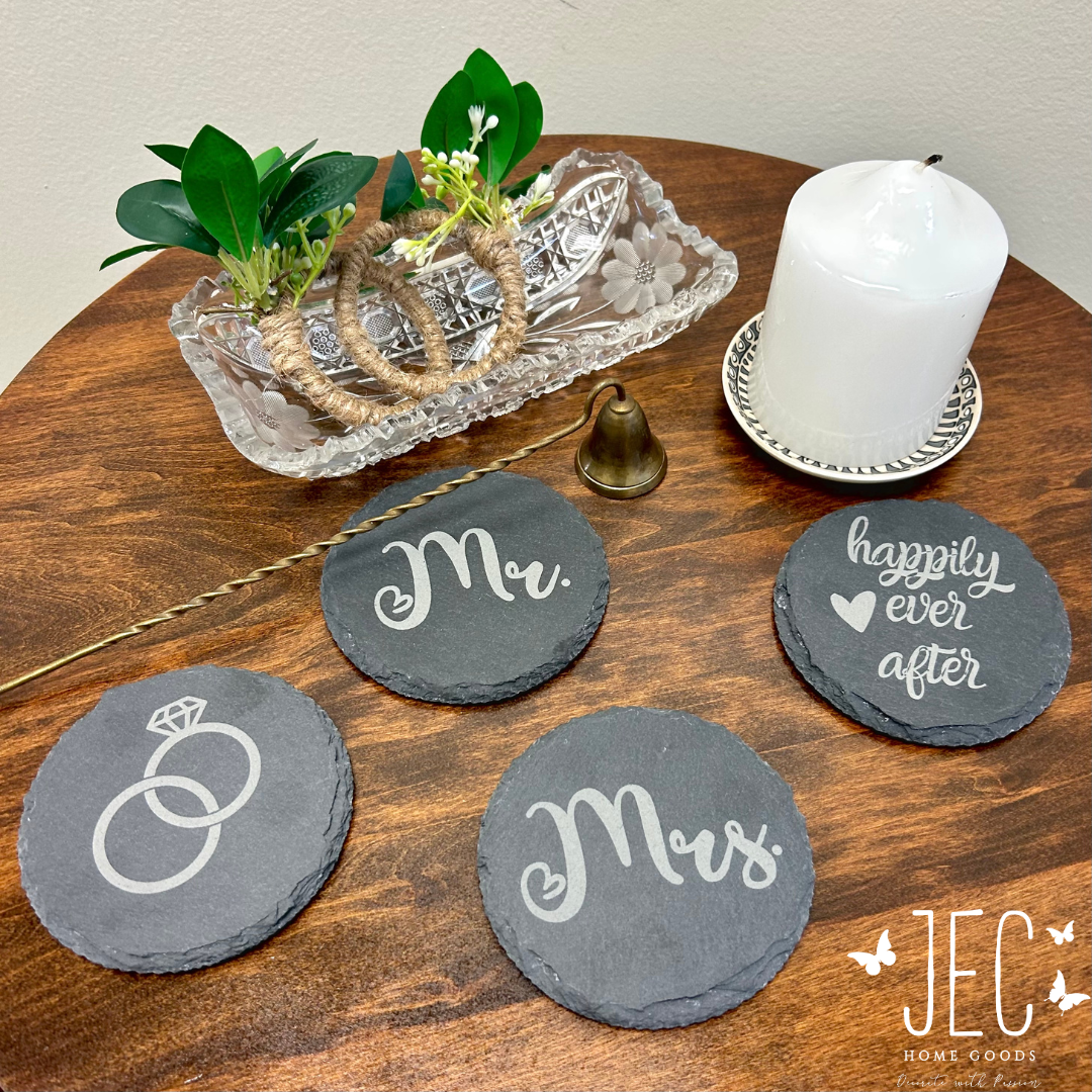 Laser Engraved Slate Coasters (Set of 4) - Newly Wed Coaster Set