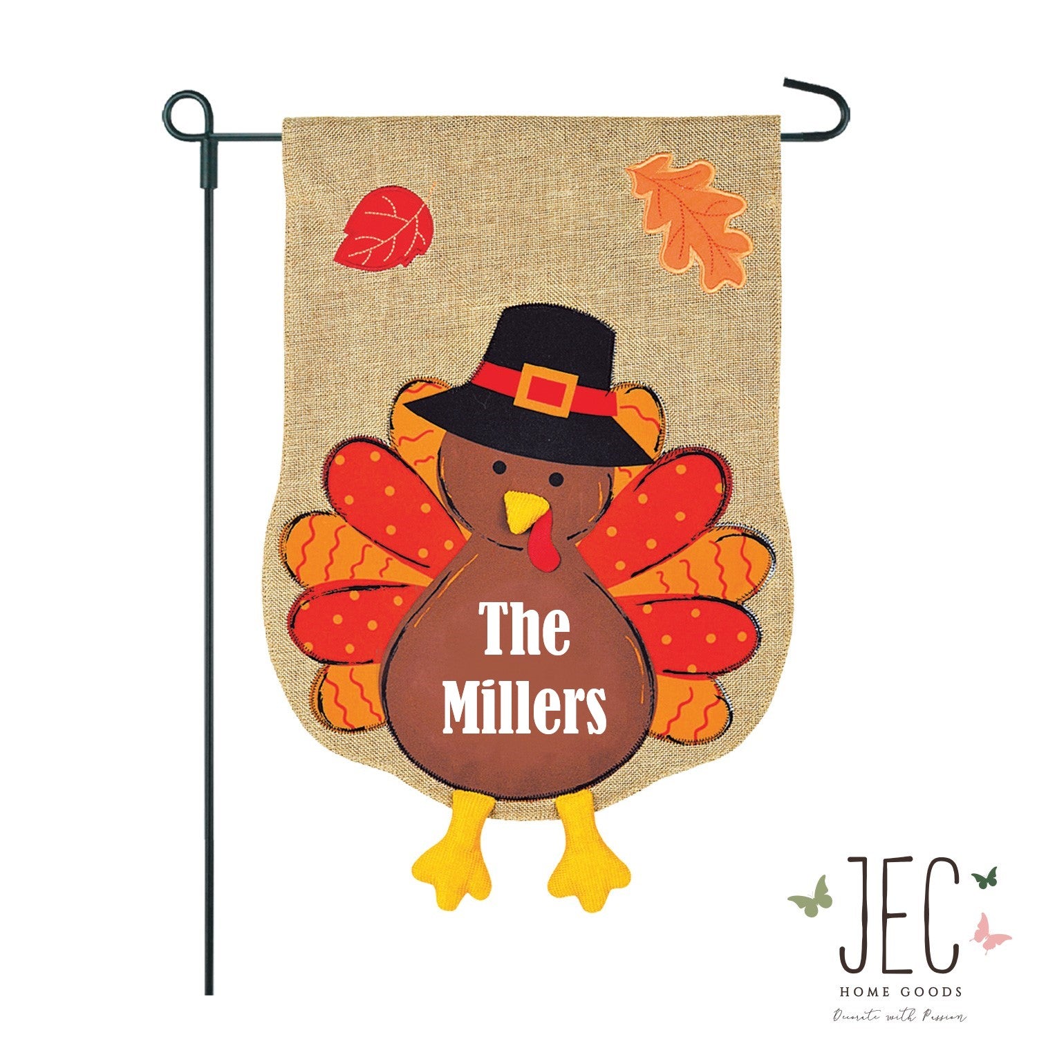 Personalized Turkey Burlap 2-Sided Garden Flag 12.5x18"