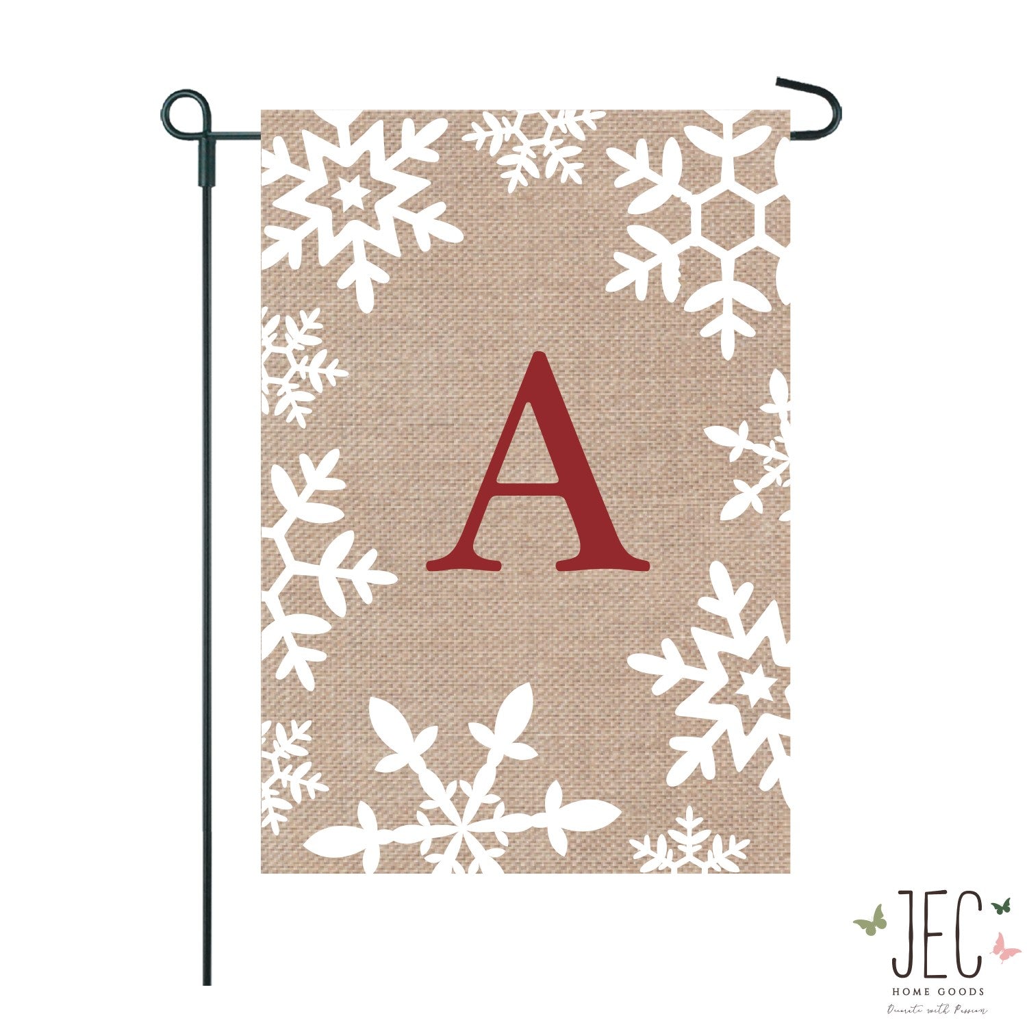 Snowflakes Monogram Burlap 2-Sided Garden Flag 12.5x18"
