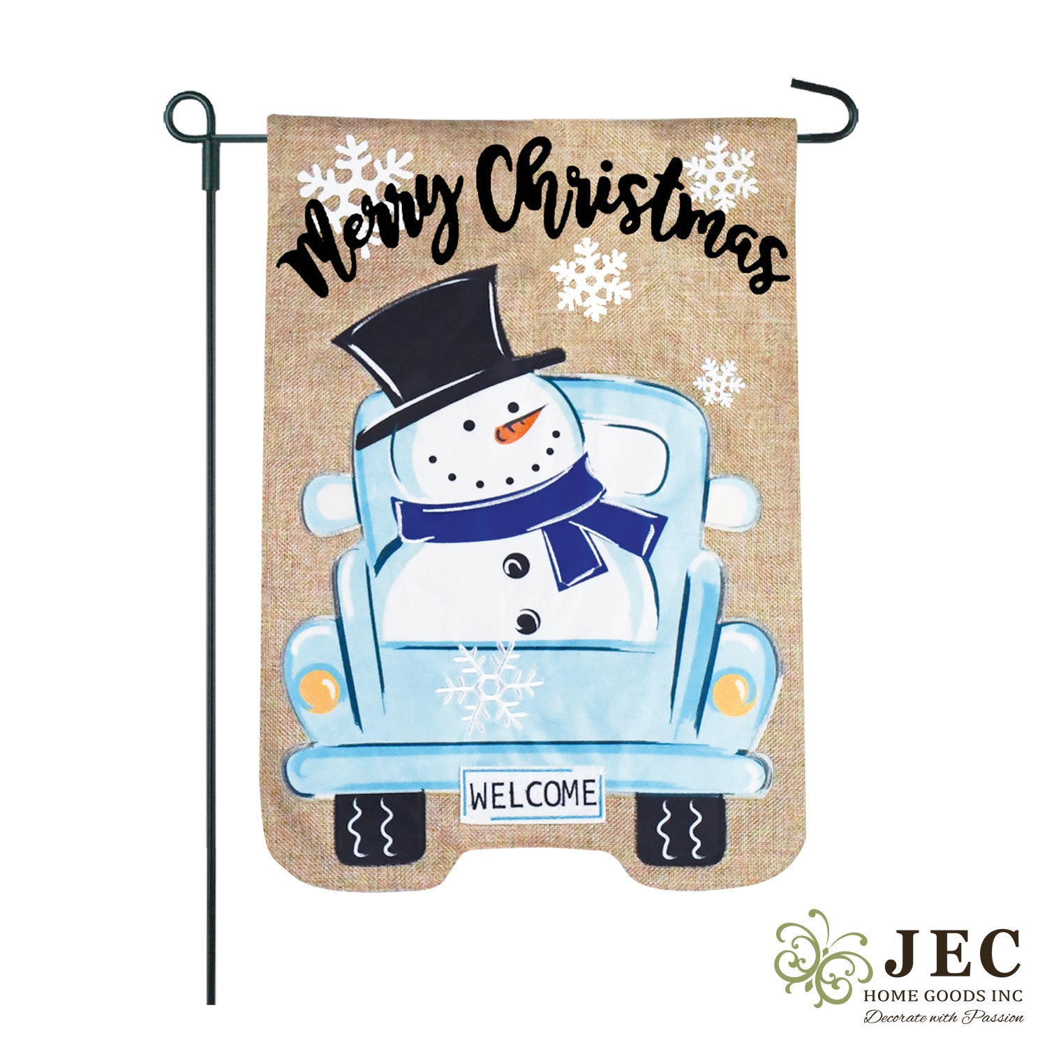 Snowman Truck Burlap 2-Sided Garden Flag 12.5x18"