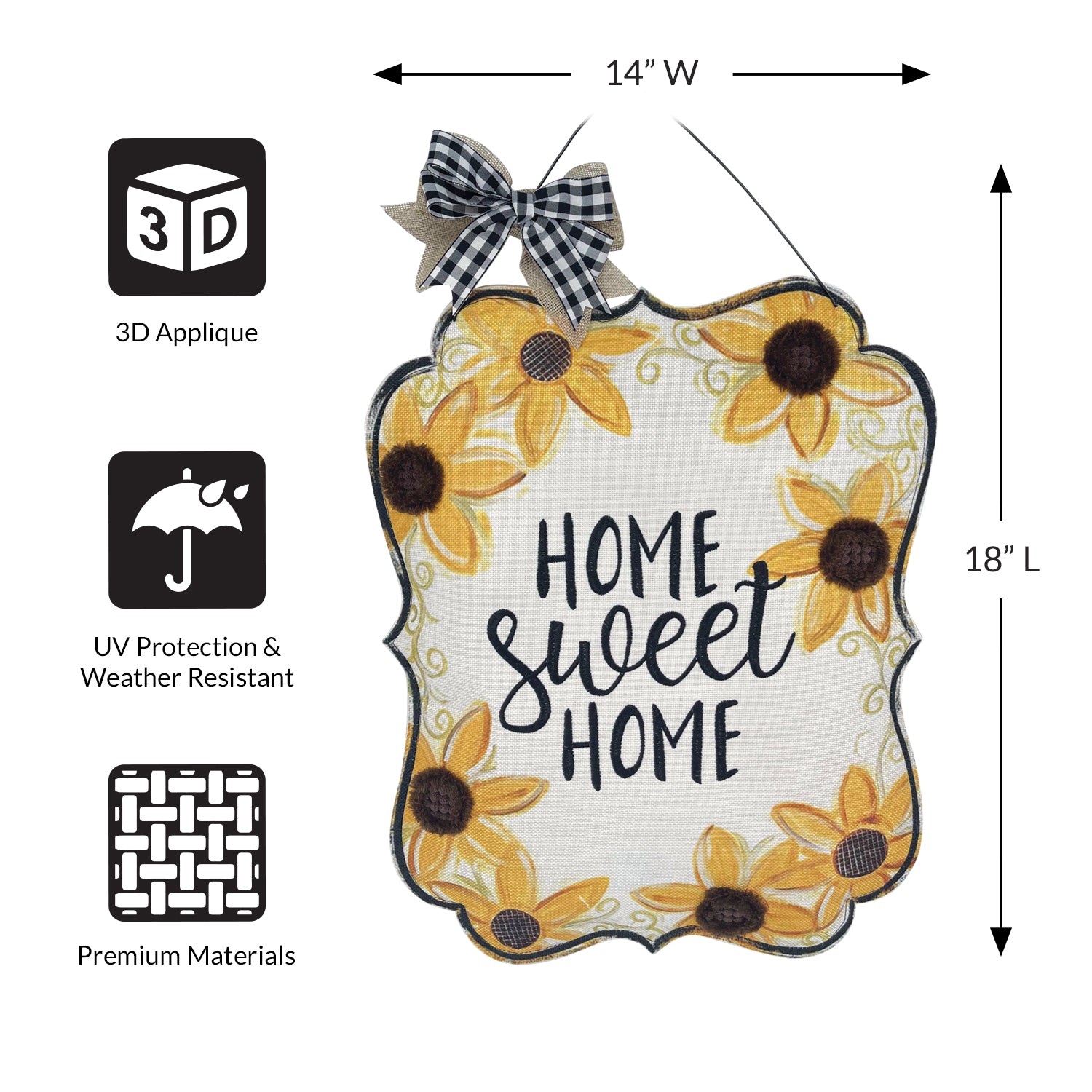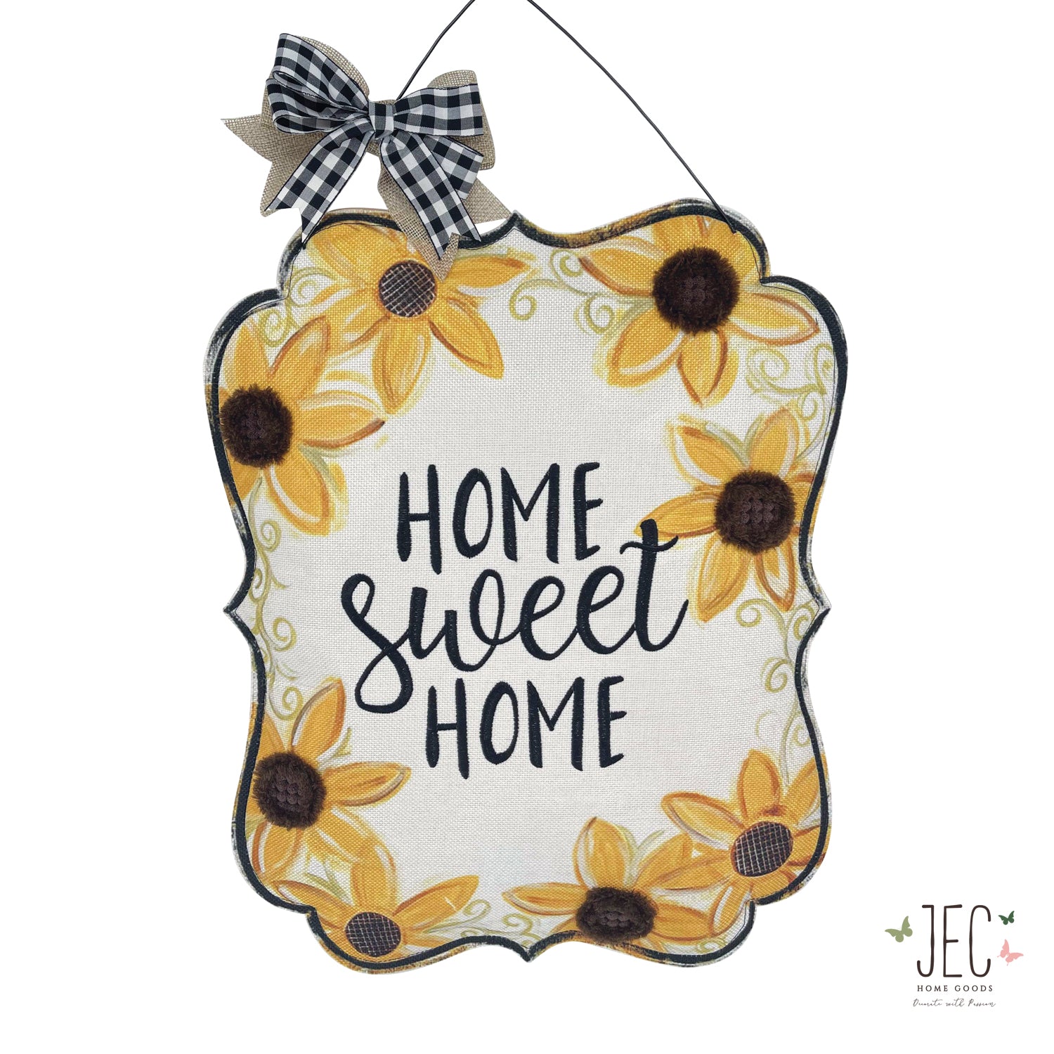 - Ready to hang with a wire that features a black and white plaid bow at the top, perfect for placement anywhere to brighten up the space