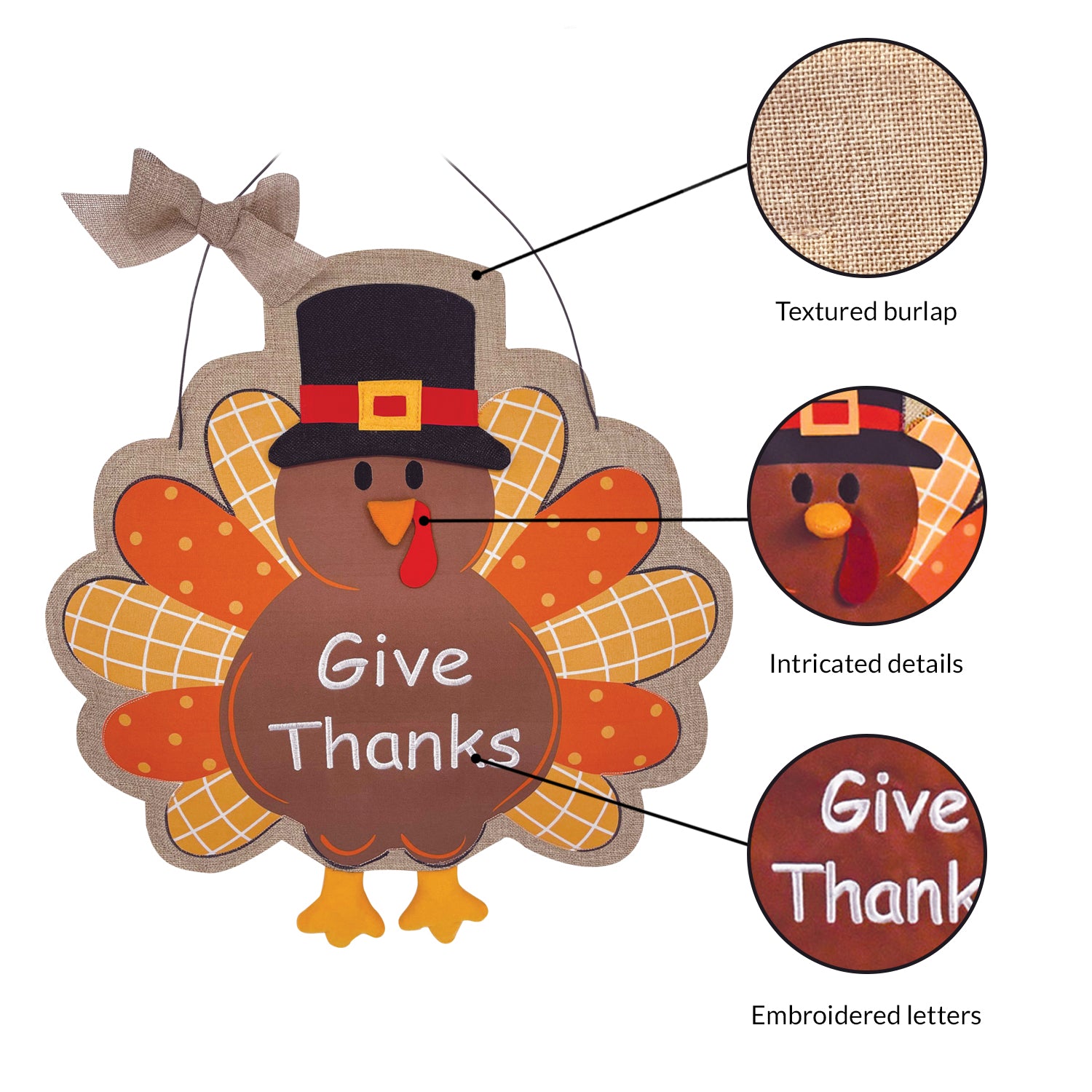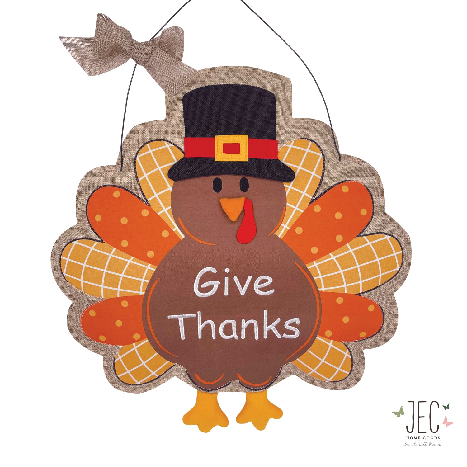 - "Give Thanks" sentiments embroidered in easy to read white script and print fonts