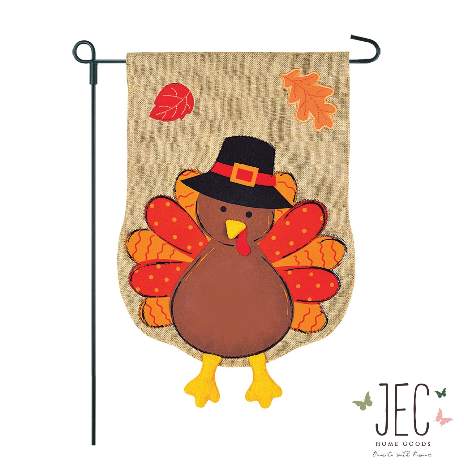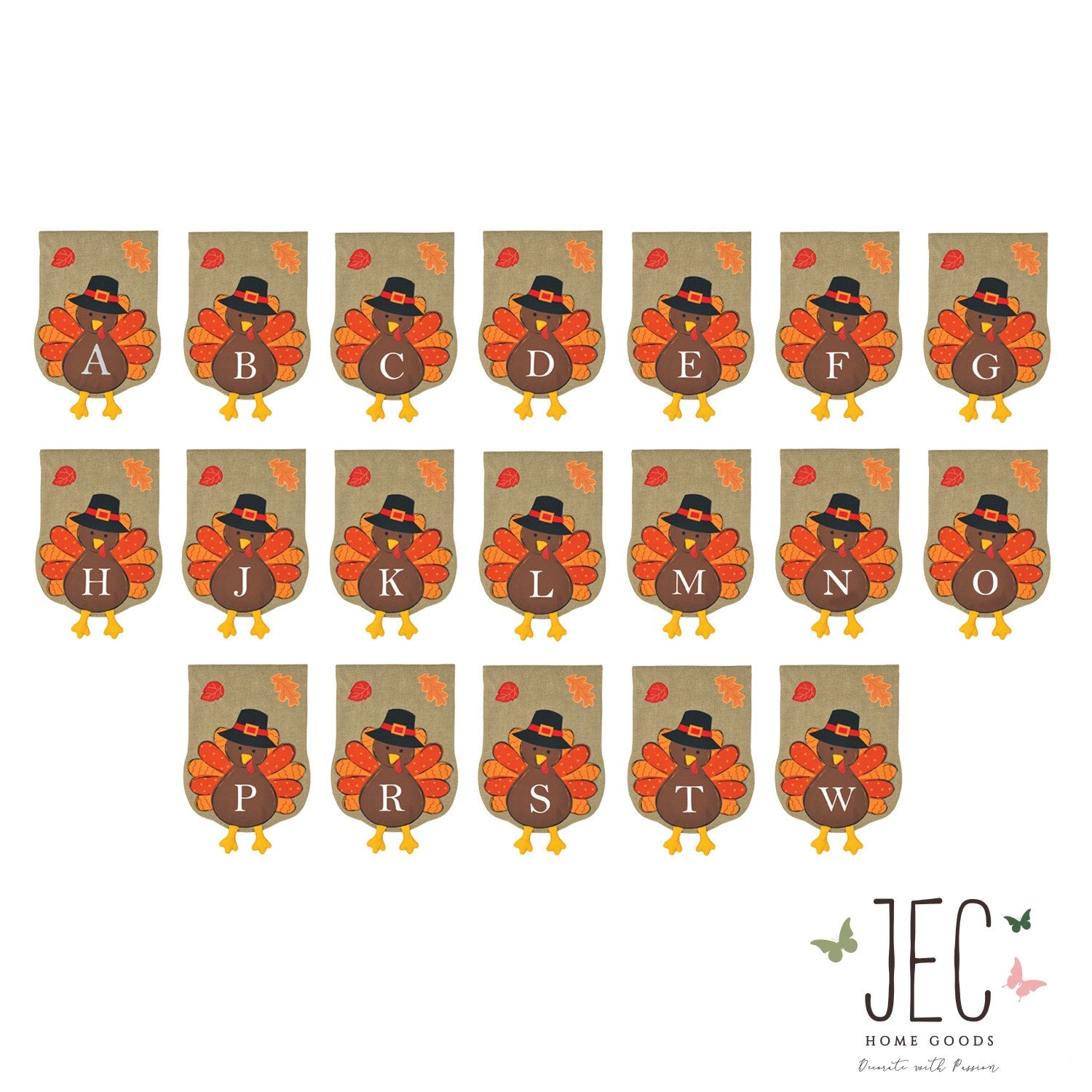Turkey Monogram Burlap 2-Sided Garden Flag 12.5x18"