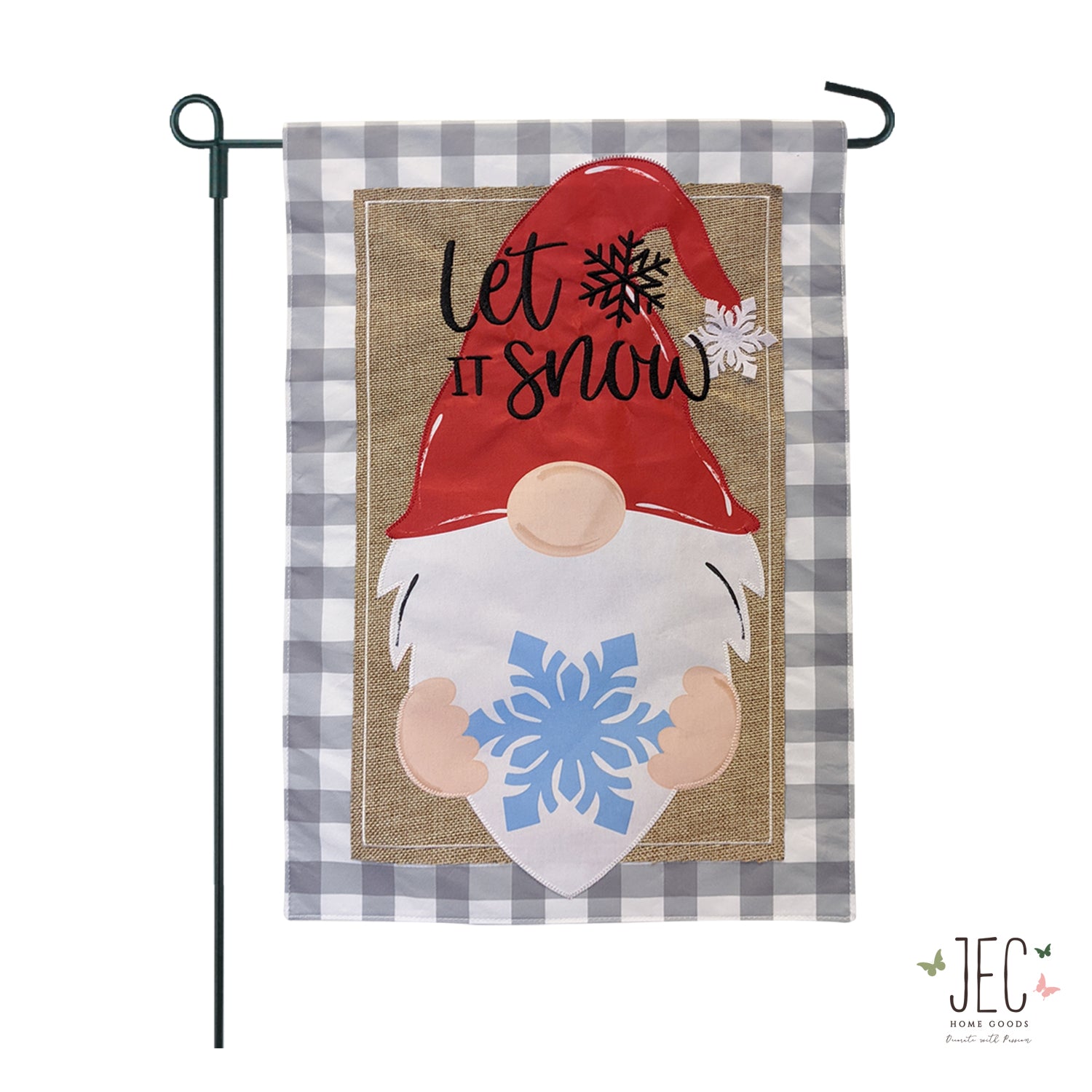 This cute and simple Christmas gnome with snowflake accents flag is a perfect addition to your holiday décor